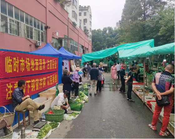 新的臨時農(nóng)貿(mào)市場位于原市場后門處,面積約為900平方米,容納了市場有愿意遷出的50戶固定經(jīng)營戶,設有蔬菜、水產(chǎn)、肉類、干貨、豆制品、凍貨等數(shù)十個區(qū)塊,還設有自產(chǎn)自銷區(qū),將在接下來兩個多月市場改造期間,有效解決周邊群眾菜籃子問題。