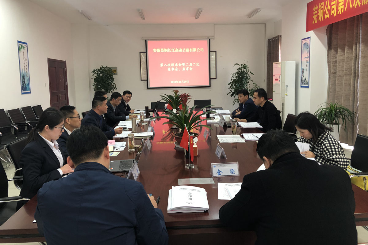 11月29日下午,安徽蕪銅長江高速有限公司召開第八次股東會暨二屆二次董事會、監事會。公司黨工委委員、副總經理湯世才,金融部相關人員參加會議。