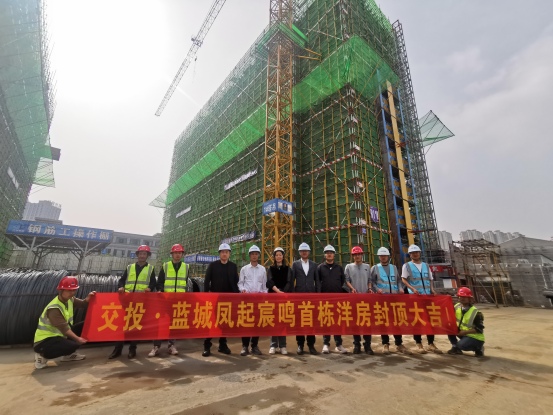 4月15日上午9點,交投藍城·鳳起宸鳴項目建設現場,工人們正忙碌地穿梭于施工現場,機器聲轟鳴不斷,施工車輛有序進出,一派熱火朝天緊張施工的場景呈現在眼前。隨著最后一立方混凝土成功填入B1號樓,交投藍城·鳳起宸鳴項目首棟B1號樓主體結構順利完成封頂,標志著工程正式轉入砌體、二次結構及裝飾裝修施工階段。交投置業公司總經理趙麗、藍城項目總經理葛繼明及相關負責人出席封頂儀式。