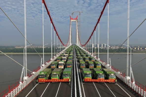 6月6日清晨,經過4天3夜的連續測試,世界首座雙層斜拉-懸索協作體系G3銅陵長江公鐵大橋成橋荷載試驗順利完成。