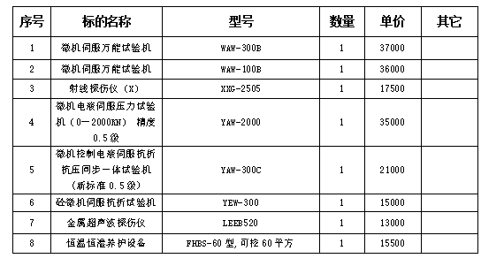 二、項(xiàng)目名稱:銅陵市華信工程質(zhì)量檢驗(yàn)有限責(zé)任公司實(shí)驗(yàn)室儀器設(shè)備采購項(xiàng)目(二標(biāo)段)(二次)