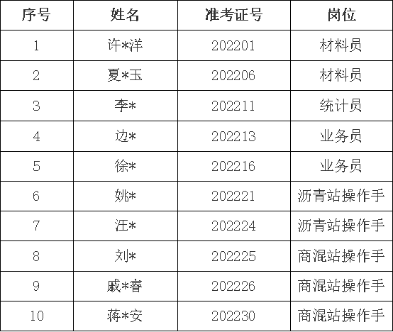 根據(jù)2022年9月29日發(fā)布的《銅陵市綜交新型路面材料有限責任公司招聘工作人員公告》的規(guī)定,現(xiàn)對擬錄用人員進行公示,名單如下: