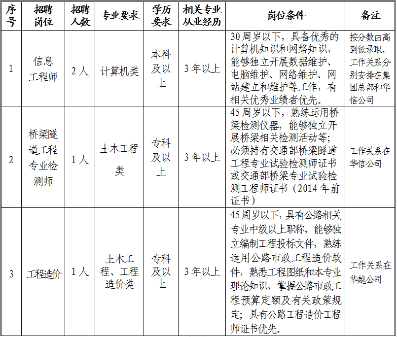 2.報(bào)名方式:采取網(wǎng)上投遞簡歷方式報(bào)名,凡有意應(yīng)聘上述招聘崗位且符合崗位要求的人員,請將報(bào)名表、個(gè)人簡歷、有關(guān)證件掃描件(學(xué)歷證書、職稱證書、職(執(zhí))業(yè)證書、身份證等)發(fā)至報(bào)名郵箱:4060356@qq.com,或郵寄地址:銅陵市北京北斗星城3-C6C7棟1102號(銅陵市綜合交通投資集團(tuán)有限公司收)。