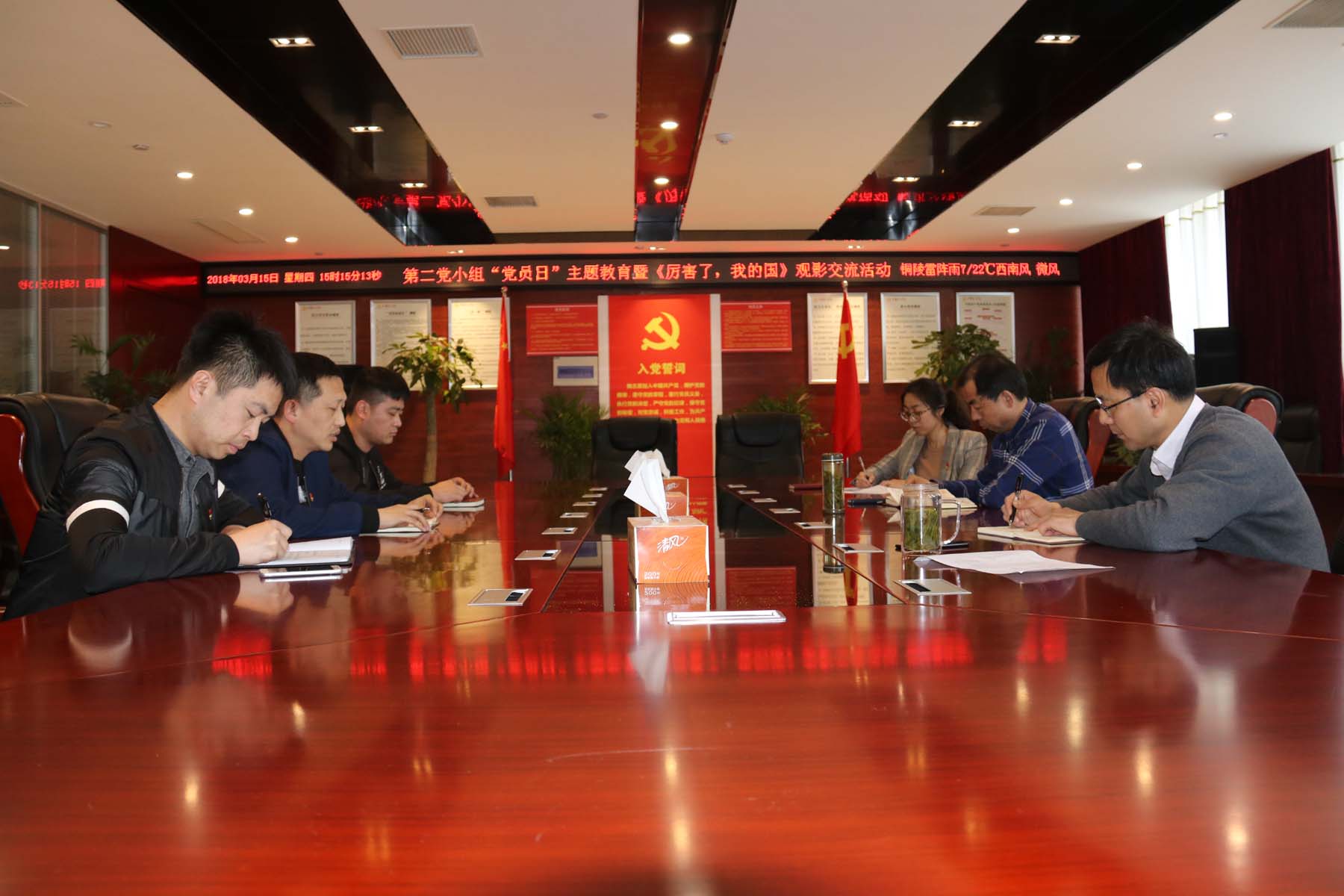 3月15日是2018年第三個黨員主題教育活動日,公司機關黨支部圍繞全國“兩會”為主題,創新黨日活動載體和方式,觀看大型紀錄片《厲害了,我的國》。觀影結束后召開黨小組專題學習會進行討論交流。大家一致認為,影片主要反映了黨的十八大以來,我國發生了翻天覆地的變化,將國家的偉大成就和變化在大銀幕上呈現出來,通過創新、協調、綠色、開放、共享的五大發展理念貫穿全片。西氣東輸、南水北調、港珠澳大橋、國產大飛機C919、量子通訊、天宮二號等方面取得的巨大成就,場面狀觀,氣勢恢宏,震撼人心,催人奮進。通過集中看、談感受、聊心得,達到了活動以學促工的目的和效果。