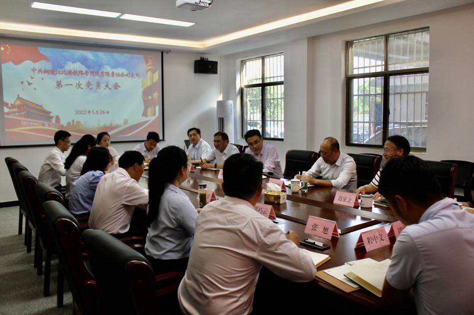 5月26日下午,江北港鐵路專用線公司黨支部第一次黨員大會在公司一樓會議室隆重召開。集團公團總經(jīng)理周文勝出席會議并作重要講話,集團公司黨委副書記方勁松,集團公司總工程師,江北港鐵路公司董事長、總經(jīng)理張葉來等領(lǐng)導(dǎo)同志參加會議。會議由公司副總經(jīng)理高家立主持,參會黨員共12人,其中有選舉權(quán)的黨員9人。