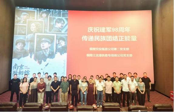 為進(jìn)一步加強(qiáng)黨性教育,傳承紅色基因,8月28日,銅陵江北港鐵路專用線公司黨支部聯(lián)合銅陵交投集團(tuán)公司第二黨支部開展“慶祝建軍98周年 傳遞民族團(tuán)結(jié)正能量”紅色觀影《南京照相館》主題黨日活動,通過沉浸式觀影體驗,引導(dǎo)黨員干部銘記歷史、砥礪初心。